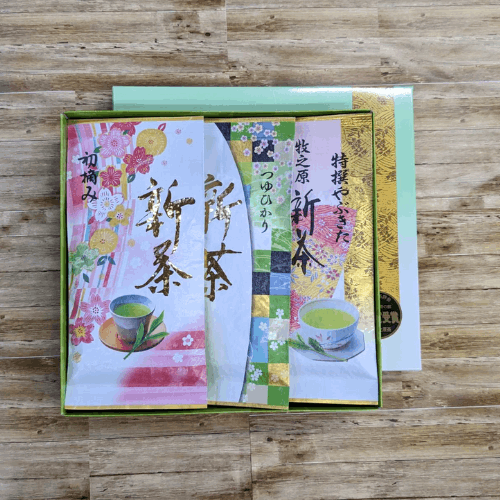 | 内容 | 初摘み100g×1袋 つゆひかり100g×1袋 特撰やぶきた100g×1袋 手提げ袋付き |
