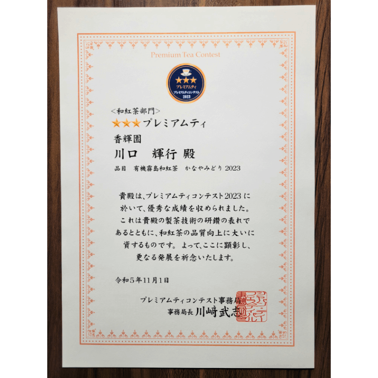 有機霧島和紅茶 かなやみどりpremium 2023
