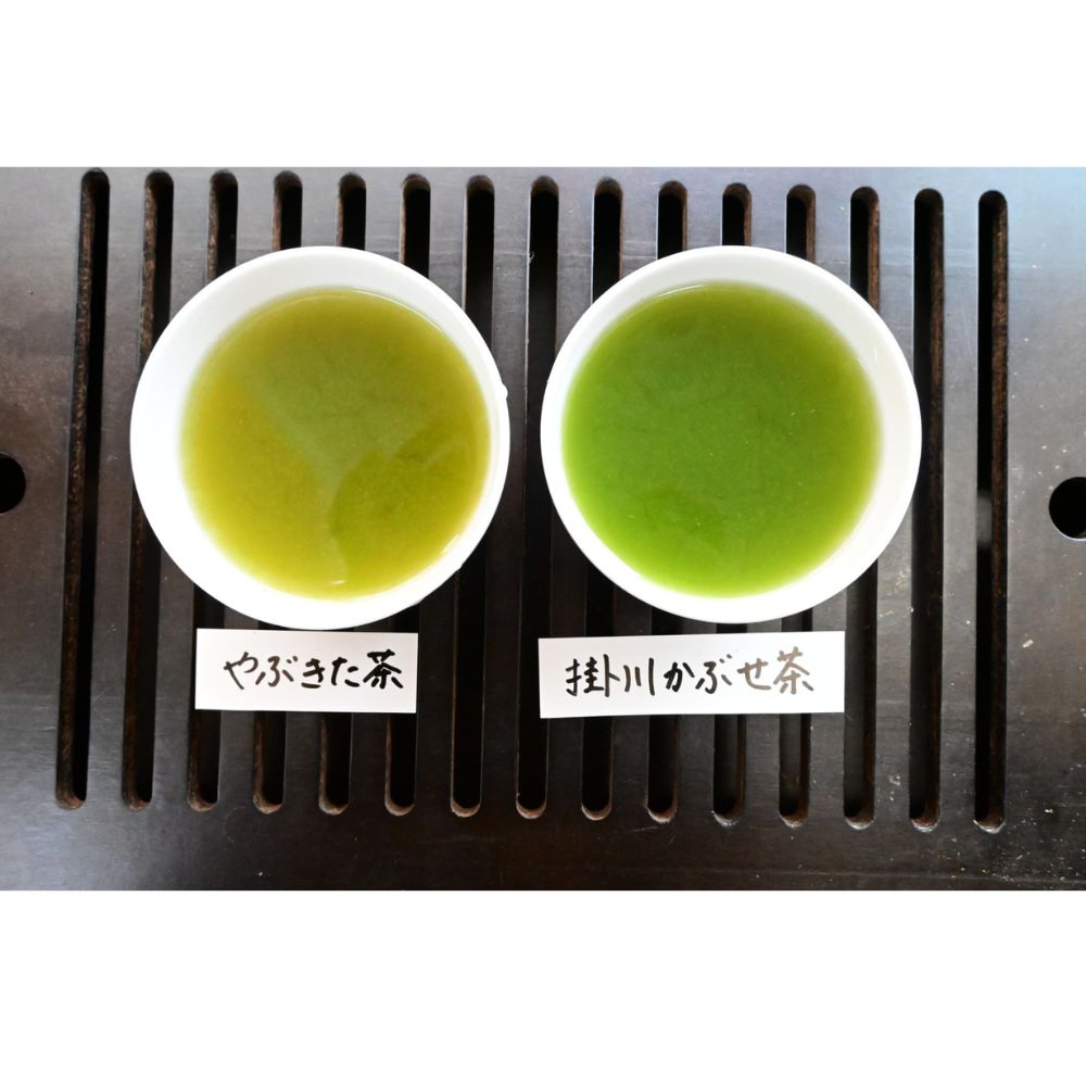 味の特徴は、渋みの元である「カテキン」が少なく、旨味のもとになる「テアニン」は多く出来上がるため、渋味が少なくキレイな水色、旨味が凝縮された逸品となります。また「掛川かぶせ茶」は、夏の暑い季節には水だしで美味しくお召し上がりいただけます。
