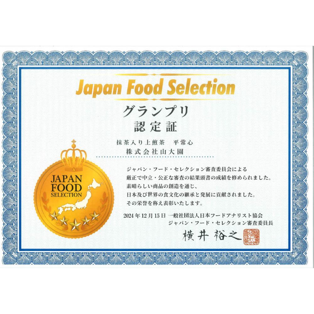 2024年12月にジャパンフードセレクショングランプリを受賞。抹茶と煎茶が織りなす豊かな風味が高評価をいただきました。 -